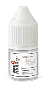 Ванилин (ЯркоПряно) — сильно сладкий и очень густой ванильный аромат.Дозировка: для напитков 1-6 капель на 100 грамм, для крема или теста 6-12 капель на 100 грамм.